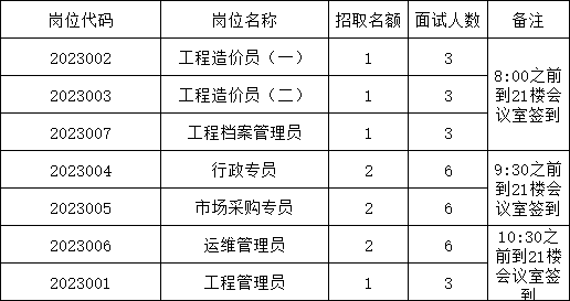 三、面試時(shí)間、崗位/地點(diǎn)及準(zhǔn)考證打印時(shí)間:
