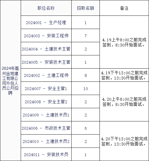 為切實做好2024年亳州金地建工有限公司外包人員公開招聘面試工作,確保面試工作嚴(yán)謹(jǐn)有序、客觀、公正、公開,根據(jù)《2024年亳州金地建工有限公司外包人員公開招聘》精神,制定本面試方案。
